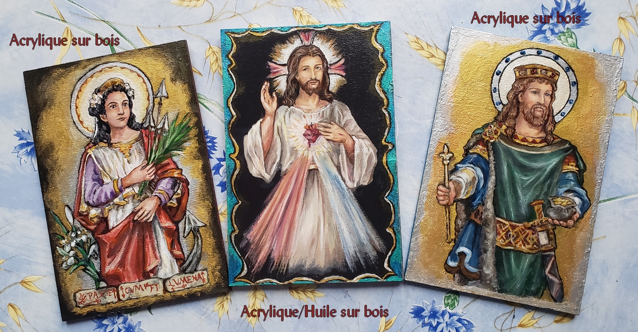- Icône personnalisée : petite peinture sur bois représentant par exemple : le saint(e) patron(ne) d'un nouveau baptisé, de vous-même, de votre enfant, d'un ami...